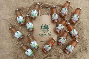 6 x sok jabłkowy (70%) z owocem róży (30%).